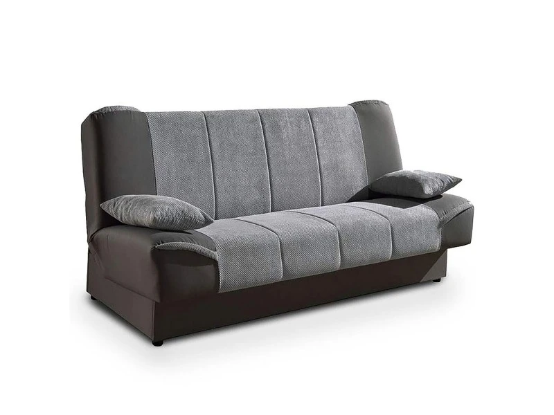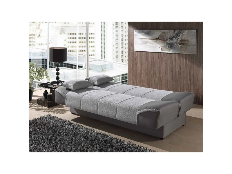 Fonctionnel et esthĂ©tique, notre canapĂ© convertible ALTON sera parfait pour les petits appartements ou les chambres d’amis. Le clic clac ALTON s’adapte Ă tous les intĂ©rieurs grâce Ă son design contemporain. Son revĂŞtement en tissu bi-matière et bicolore rĂ©chauffera votre intĂ©rieur. Le canapĂ© convertible ALTON se transforme rapidement en lit confortable grâce Ă son système d’ouverture clic clac. Il possède un coffre de rangement spacieux vous permettant de ranger couettes et oreillers. Un canapĂ© idĂ©al pour recevoir vos amis ou votre famille et pour leur offrir un couchage confortable. Avec notre clic clac ALTON, vous disposerez d’un couchage d’appoint pouvant accueillir 2 personnes. Existe en 3 coloris : gris, beige et marron. Dimension du clic clac : L. 205 cm x l. 104 cm x H. 96.5 cm Dimension du couchage : 123 x 204 cm