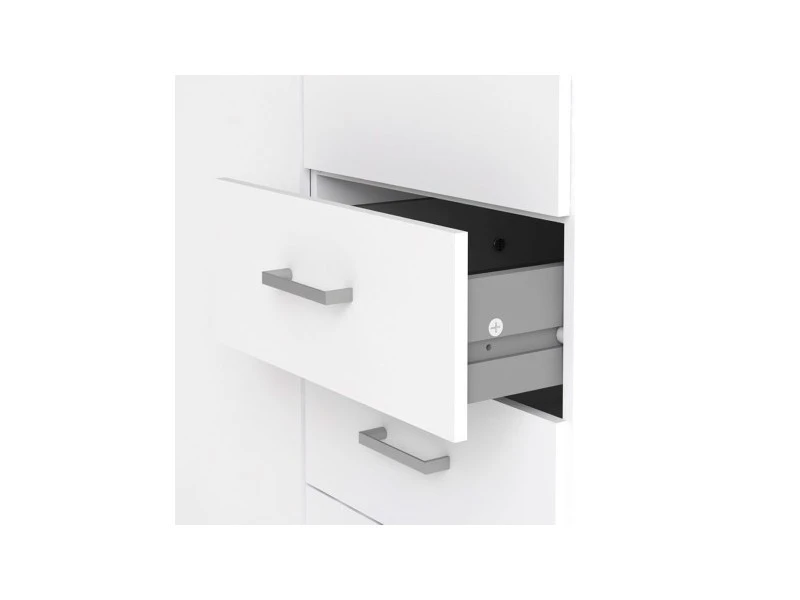 Armoire 2 portes 3 tiroirs 77,6 x 200,4 x 49,5, Structure en feuille de laminé, Blanc