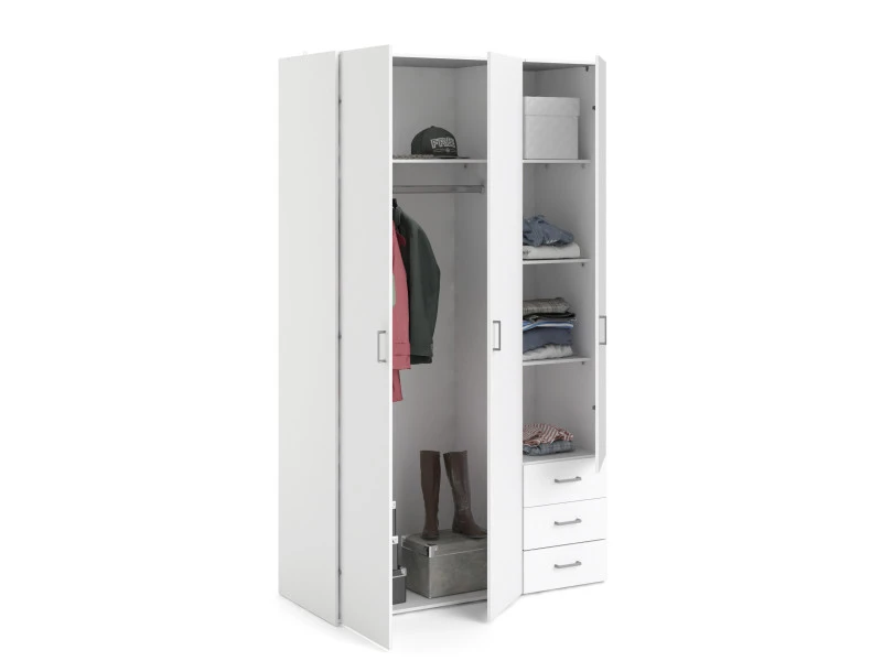 Armoire à Trois Portes Battantes Avec Trois Tiroirs, Couleur Blanche, 116 X 175 X 49,5.