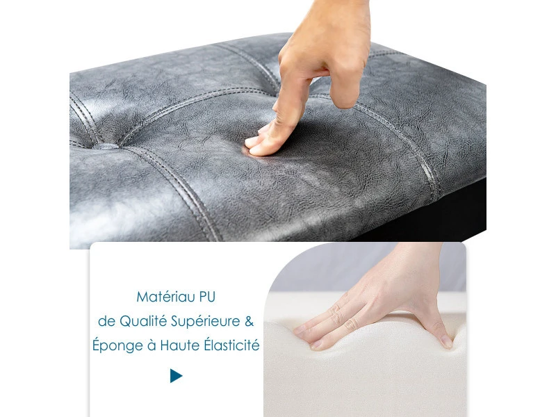 - 【Siège en PU lisse et élégant:】La surface en polyuréthane du plateau est lisse, elle ne se fissure pas et ne se décolore pas, même après une longue utilisation. En outre, l’assise est embellie de plusieurs boutons tuftés. L’ensemble est facile à nettoyer avec un chiffon humide.