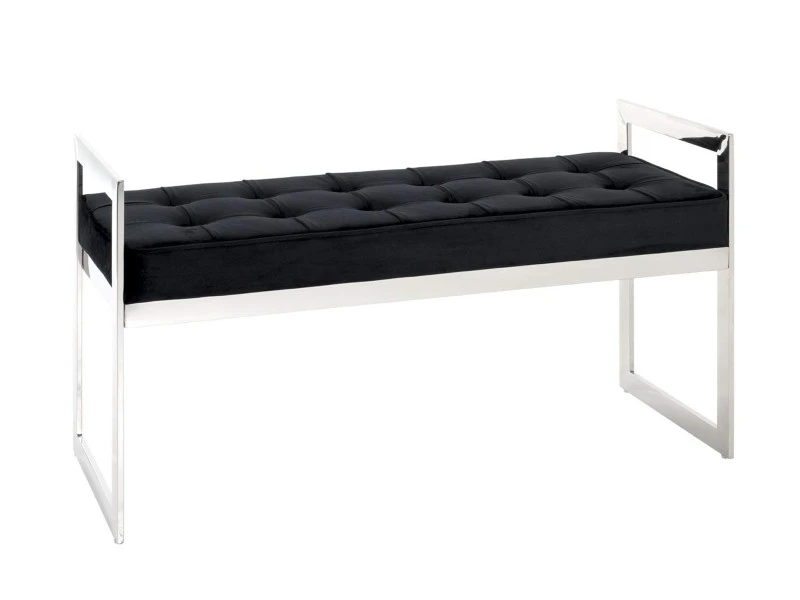 Banc avec structure en inox brillant et assise recouverte tissu velours noir, rembourrĂ© . Le banc est l’addition parfaite Ă toute pièce prĂ©sentant un design rectangulaire.Charge maximale 90 kg. Dimensions : 100 x 40 x 57 cm. MatiĂ©re : Tissu velours – Inox brillant. Poids : 9,99 kg. Coluleur : Noir. Charge maximale 90 kg