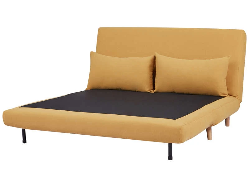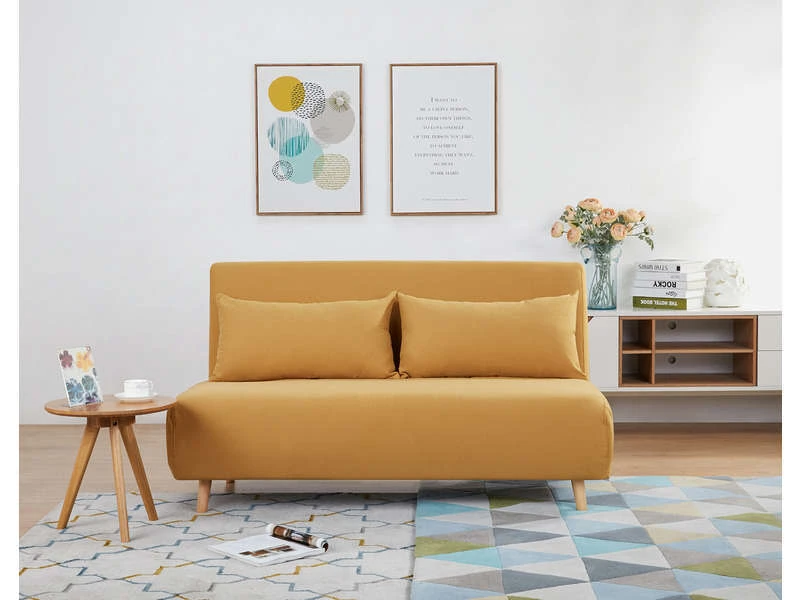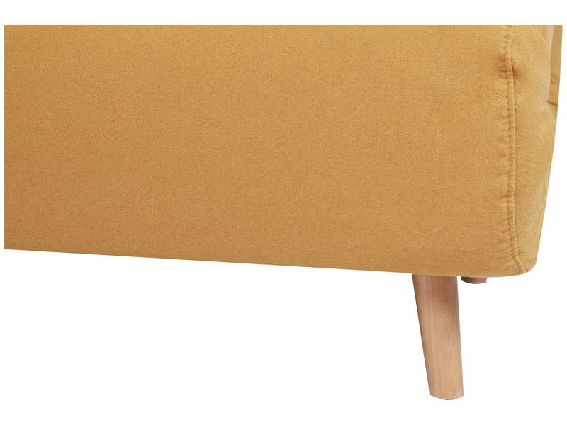 La banquette NIELS aux inspirations nordiques est une pièce de choix pour votre salon. Dressée sur des pieds en bois, lui donnant une allure très contemporaine, elle joue de ses charmes avec son revêtement en tissu jaune moutarde, pour une pièce très tendance. Robuste grâce à sa structure en bois, elle vous assure une utilisation pérenne. Convertible, elle se transforme en un lit deux places format 140x190cm, en un rien de temps. Existe aussi en coloris gris foncé, gris clair et bleu canard.