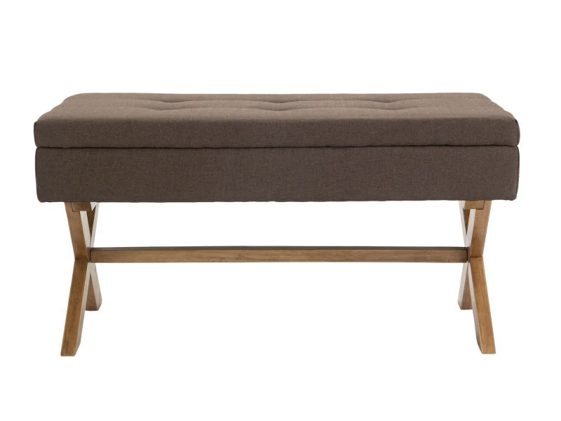 La banquette Namaro repose sur un piètement en bois de caoutchouc. Les pieds sont montés en croisillons et soutenus d’une latte transversale pour renforcer la stabilité de ce modèle.