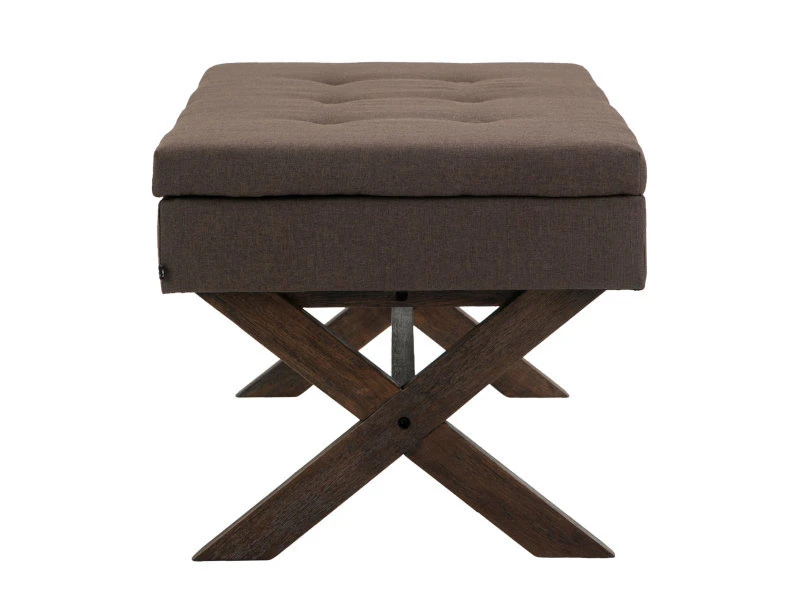 La banquette Namaro repose sur un piètement en bois de caoutchouc. Les pieds sont montés en croisillons et soutenus d’une latte transversale pour renforcer la stabilité de ce modèle.