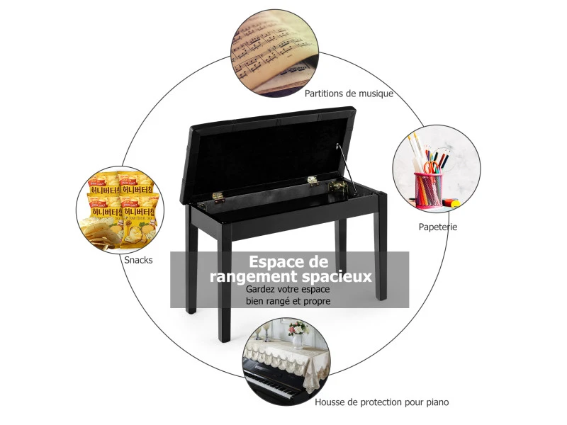- Un compartiment de rangement pour stocker des livres, des partitions, etc.