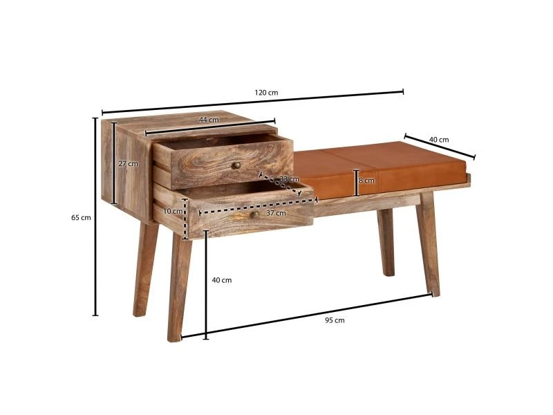 - Mélange de matériaux harmonieux de bois massif et de cuir véritable