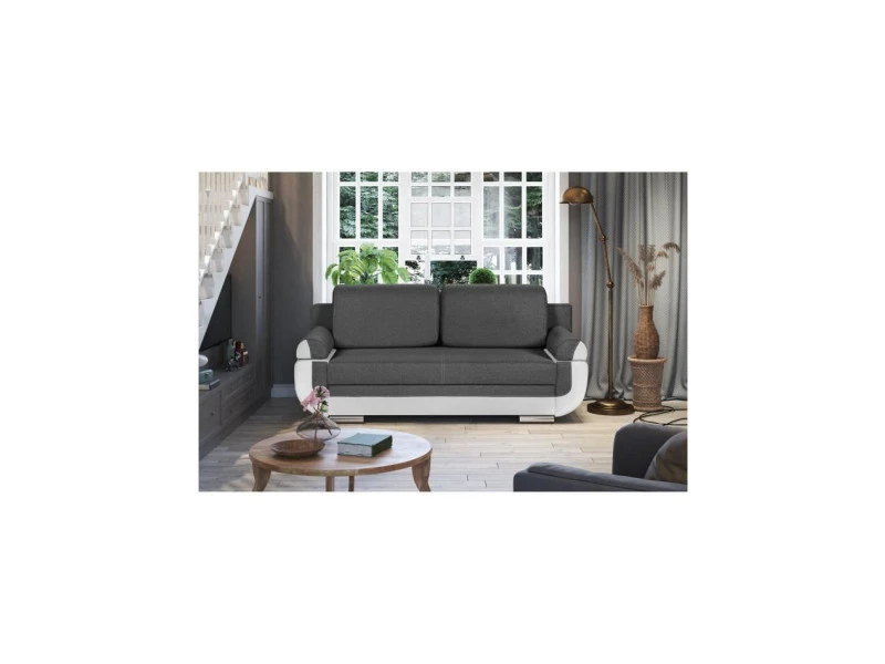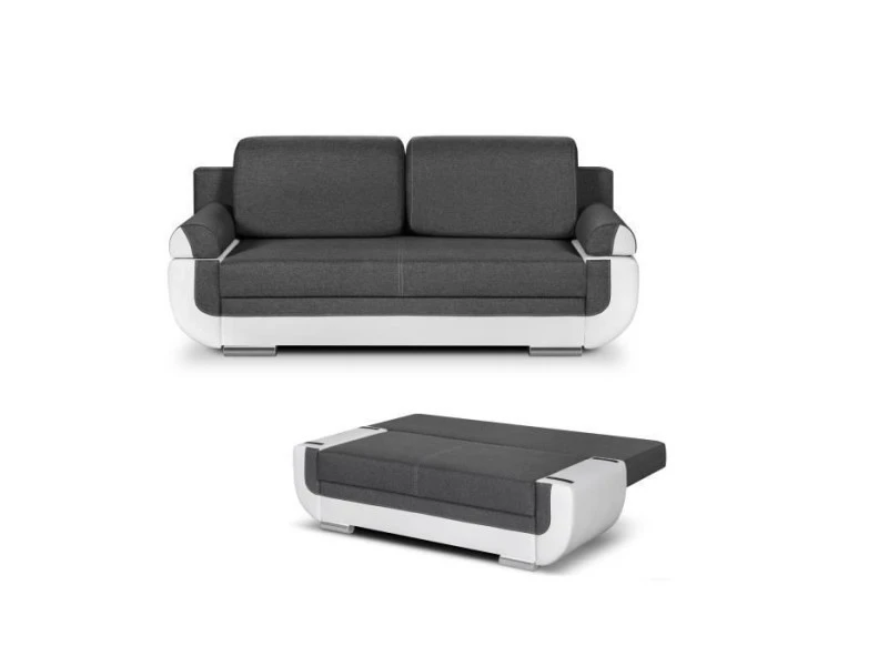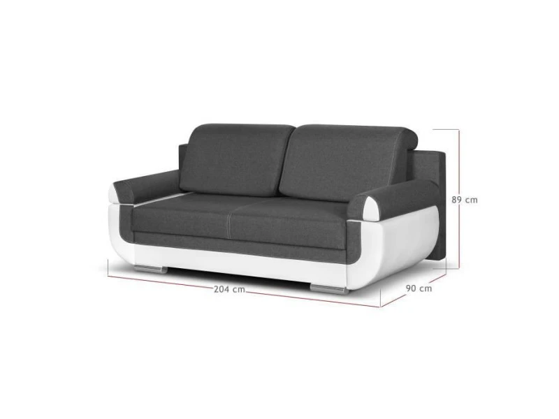 NINA Banquette convertible lit, avec le coffre – Tissu gris et simili blanc – L204 x P90 cm