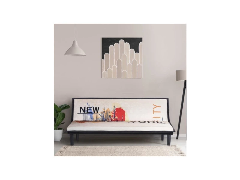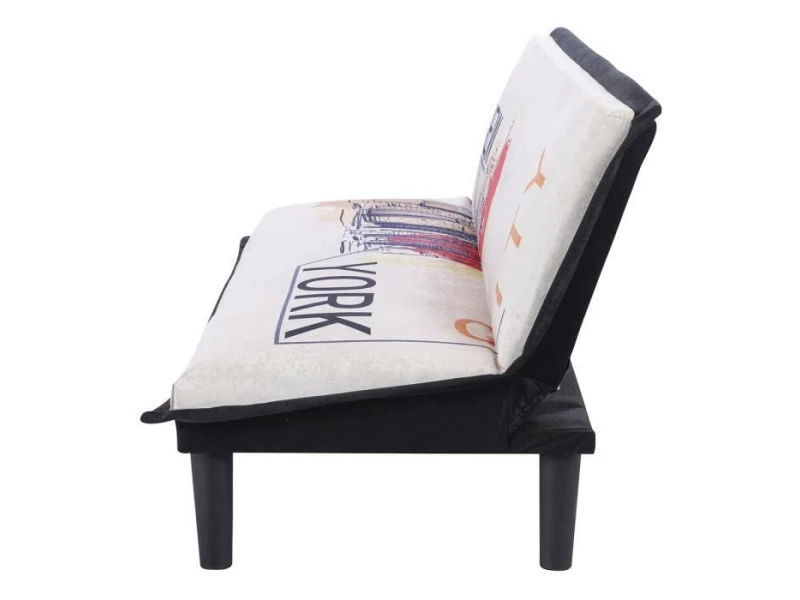 CASSY Banquette clic clac 3 places imprimĂ© New York – Tissu gris clair – L 179 x P 79 x H 74 cm