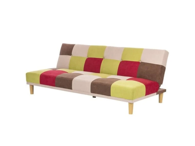 DARIA Banquette clic clac 3 places – Tissu patchwork gris clair – L 190 x P 77 x H 71 cm