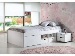 Lit Avec Tiroirs De Rangement Et Deuxième Lit Gigogne En Pin Massif Peint à L’eau Blanc