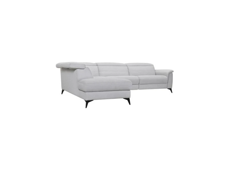 Canapé d’angle gauche avec 1 place relax électrique – Tissu gris – L 292 x P 232 x H 99 cm – MELBOURNE
